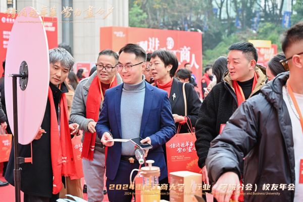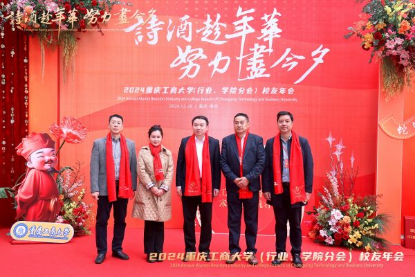 祥龙辞岁归玉宇,金蛇起舞启新程。2024年12月28日,重庆工商大学2024年(行业、学院分会)校友年会在南岸校区图书馆剧场成功举行。重庆经开区党工委委员、管委会副主任舒勤科,学校党委书记曾维伦,党委常委、副校长李国军,党委常委、纪委书记、重庆市监委驻学校监察专员张海燕,党委常委、副校长任毅,党委常委、副校长杨柏,学校老领导王崇举应邀出席年会。南岸区科技局、重庆经开区投资集团(产业集团)副总经理、迎龙创新港·大学科技园以及学校相关部门和学院的负责同志,各兄弟院校校友会代表、学校校友总会和各分会的班子成员以及部分师生代表500余人,齐聚南山之麓、翠湖之滨共赴校友年会的“诗酒趁年华,努力尽今夕”之约。