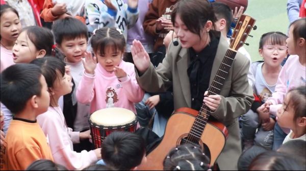 此外,袁静还多次参与福利院志愿者活动。在一次活动中,她利用自己擅长的吉他、钢琴、贝斯等乐器,为孩子们带来了一场别开生面的音乐互动课。她用音乐打开孩子们的心扉,用语言搭建沟通的桥梁,让孩子们在爱与信任中感受到温暖与关怀。这次实践也让她深刻认识到,幼儿教育不仅是知识的传递,更是情感的交流与心灵的滋养。
