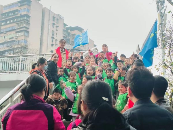 3月13日,志愿者们来到了鼎山幼儿园,和幼儿园老师一起向小朋友们普及环境保护的相关知识。在活动开展前,每一位志愿者都负责带领一位小朋友组成小分队。小朋友们被分成了三组,分别承担捡垃圾,观察树木以及给树木浇水的任务。