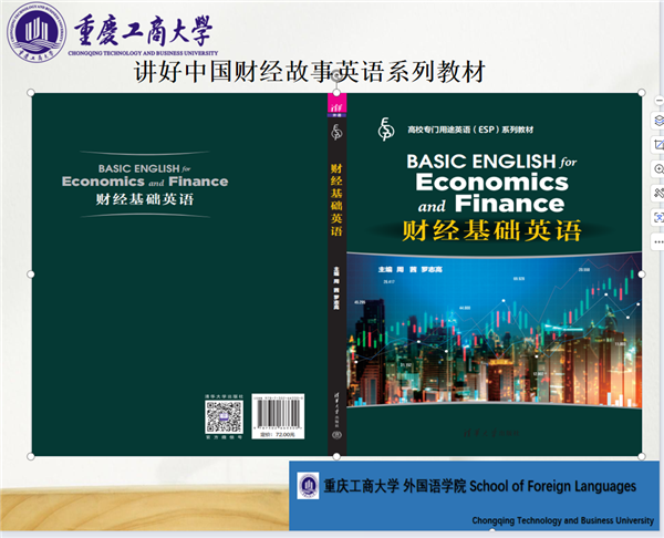 教材是课程思政的重要载体。重庆工商大学外国语学院积极与清华大学出版社、华东师范大学出版社等合作,编写“讲好中国财经故事”系列英语教材。例如,与清华大学出版社合作编写的《财经基础英语》教材,通过课后翻译和项目练习,引导学生关注中国经济发展成就,提升他们用英语讲述中国财经故事的能力。