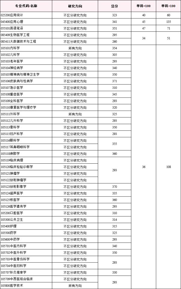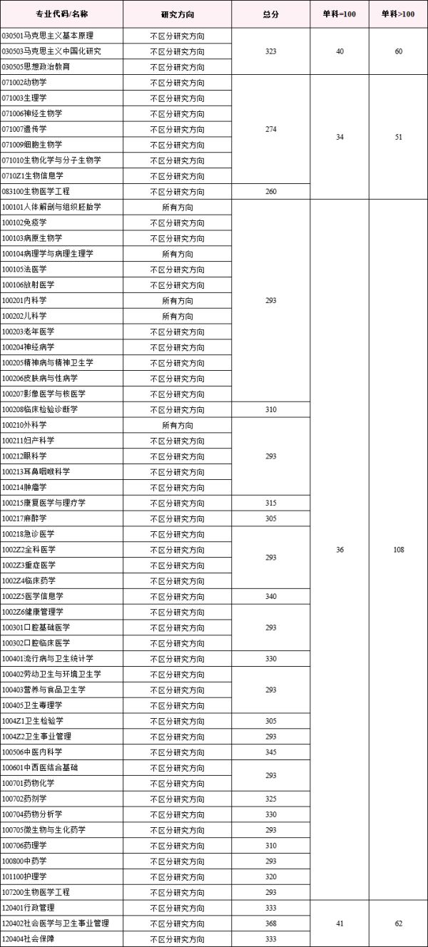 重庆医科大学2025年硕士研究生复试基本分数线发布