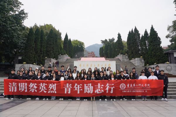 春风轻拂,又至清明。为深切缅怀革命先烈,传承革命精神,汲取奋进力量,4月3日上午,重庆第二师范学院生物与化学工程学院组织学生到重庆歌乐山烈士陵园开展“清明祭英烈,青年励志行”主题研学活动,通过庄严肃穆的仪式,表达对革命先烈的崇高敬意和无限哀思。学院团总支学生会、各班级团支部共100余名同学参加。