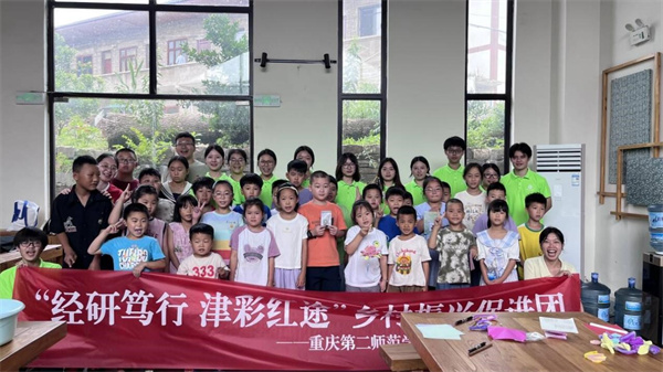 近日,重庆第二师范学院经济与工商管理学院“经研笃行 津彩红途”乡村振兴促进团和党建工作样板党支部“商务经济学及电子商务专业学生支部”15余名师生深入江津区吴滩镇郎家村,将“童心筑梦”与“数字赋能”紧密结合,通过“少儿素养培育+产业技能提升”双轨并行的实践模式,为郎家村注入了蓬勃的青春动能。