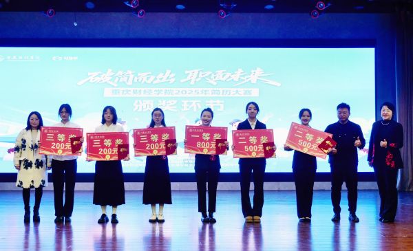 12月18日,重庆财经学院2025年简历大赛决赛圆满收官。本次大赛自12月1日启动以来,吸引全校逾2000名2027届本科毕业生积极参与,经初赛筛选、决赛初选及现场展示等多轮比拼,最终8名选手脱颖而出,站上决赛舞台。