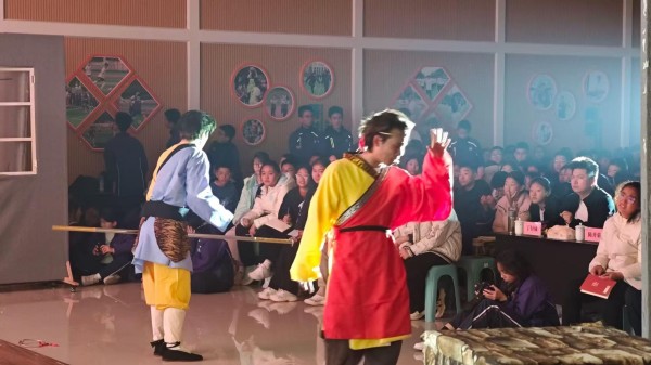 2025年12月18日,重庆第二师范学院戏剧教育专业的学生们带着《走近西游记》的首演版走进重庆市第110中学教育集团观塘校区,与中学生们共同探索古典名著的现代表达。中学生们通过小组讨论,分析人物心理,甚至尝试编写现代版的师徒对话,将古典故事与当代青少年的生活经验相连接。