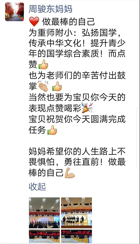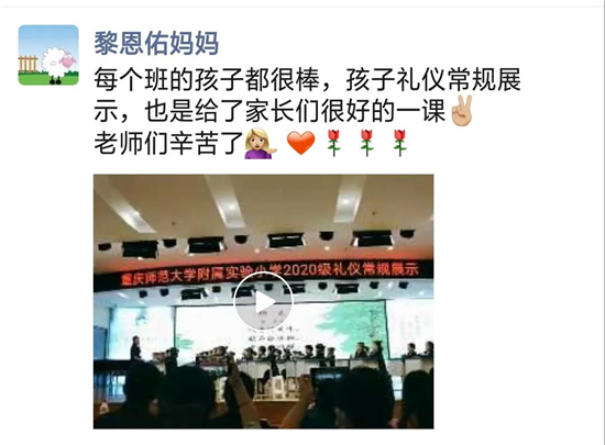 2020级礼仪常规展示结束后,不少家长为孩子的成长感到欣慰,也对此次2020级礼仪常规展示好评不断。