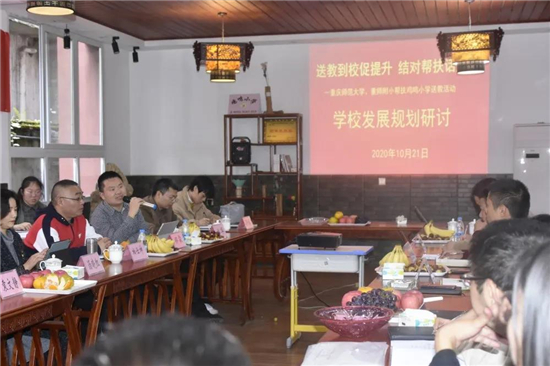 为通过扶智做好深度贫困乡镇脱贫工作,重庆师范大学柏仕坤主任、重师附小郑霖校长、汤晓红副校长带领“国培计划2020”送教团队,赴城口沿河小学、鸡鸣小学开展教育帮扶工作。