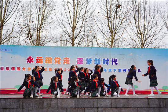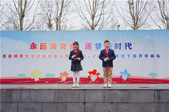 3月1日上午,重庆师范大学附属实验小学校2020-2021学年度下期开学典礼成功举行。开学典礼是进行学校教育的重要组成部分,是新学期生活的开始。此次典礼以“永远跟党走 逐梦新时代”为主题,旨在围绕新学期的校园生活主题,激励全体师生振奋精神、锐意进取,营造浓厚的开学气氛,创新学期良好开端。
