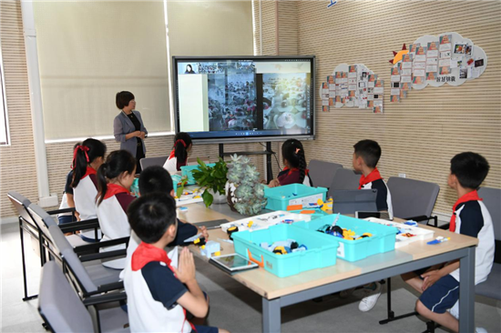 第三个“1”为“1”门主题课程,行远小学依托学校智慧教育探索,以德育为内核,将党史教育、队前教育、爱国教育融通其中,运用“OMO行远智课堂”实现资源延展、互学共启,目前学校已开展86期主题融合课。