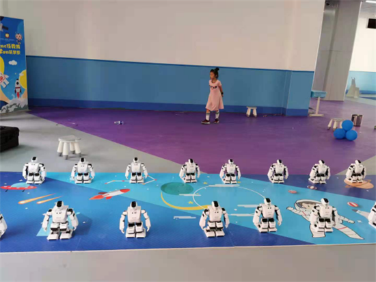 8月30日上午,两排编程机器人整整齐齐地排列着,迎接两江新区金渝云创小学第一批新生和家长们的到来。