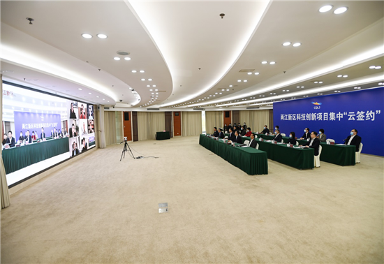 11月18日,在深入学习贯彻党的十九届六中全会精神之际,在统筹疫情防控和经济社会发展关键节点,重庆两江新区举行科技创新项目集中“云签约”活动,21个科技创新项目集中落地,投资总额超140亿元。