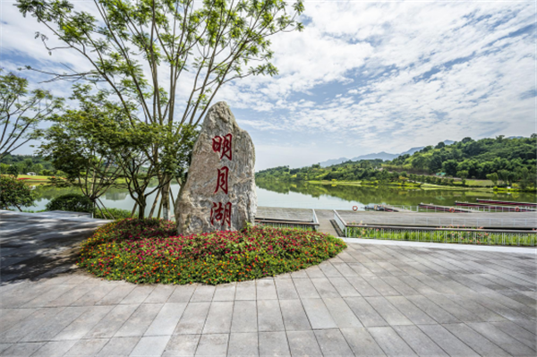 清澈的明月湖水,倒映出岸边的湖光山色;旋转的风车,让花香在空气中飘得更远;五彩的环湖步道,将一颗颗璀璨明珠串联在了一起。