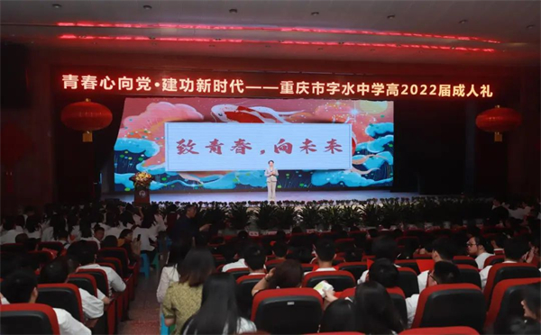 携一缕浅夏的芬芳,五月向我们款款走来;洒一片明媚的金光,青春在这里绽放精彩。2022年5月8日,重庆市字水中学举行高2022届学生“青春心向党,建功新时代”成人礼仪式。在典雅的成人礼仪式中,青春与高考激情碰撞,高三学子既充分感受到成人的仪式感,更意识到成人的责任感。十八而志,师长予以祝福;青春筑梦,吾辈自坚其心!