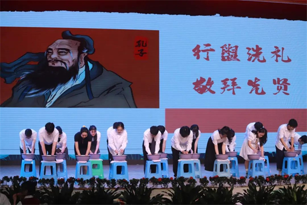 成人礼仪式以两礼为载体展开:先行盥礼,寓意静手静心,勤学勤练;再行冠礼,寓意授冠之礼 ,成人自立。两礼既成,成人之事,不仅是年龄的标识,更是品德的规范。自行盥礼,学生应当改正谬误,行止有度;正其衣冠,学生应当遵纪守法,永行正道。男子行冠,女子及笄,站在成人之路的起点上,青年正心才能明德,行稳方能致远。