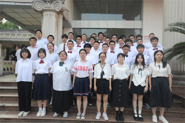 成人礼后,师生合影留念。夕阳余晖下,少年身姿灵动,笑声爽朗,眸中有日月星辰,肩上担家国民族。请诸君,还看今朝,冠笄既加,少年郎笃志;且待明日,大任始承,强国梦兴邦!