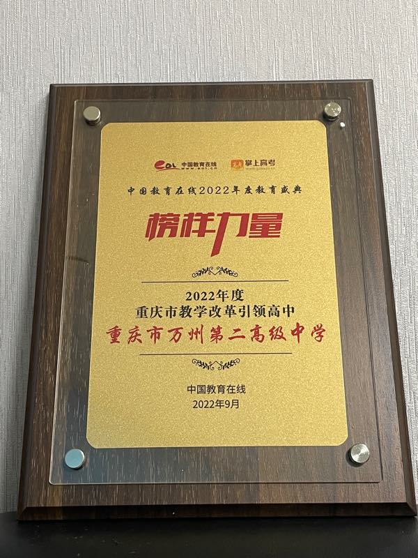 活动经过前期征集、专家会审、综合评审等阶段,重庆市万州第二高级中学从全国众多学校中脱颖而出,获得“2022年度教学改革引领高中”奖项。这充分体现了学校办学成果得到了社会的广泛认可和高度好评。