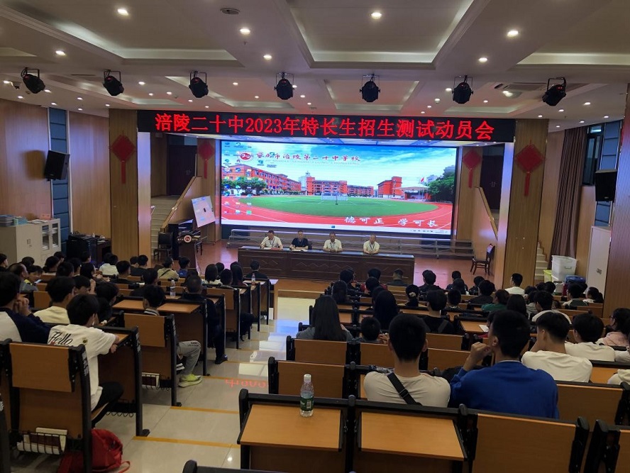 为了进一步提升教育教学质量,增强学校文化内涵,根据区教委文件相关精神,2023年5月21日,重庆市涪陵区第二十中学校开展了“2023特长生招生测试动员会”,并举行了专业测试。