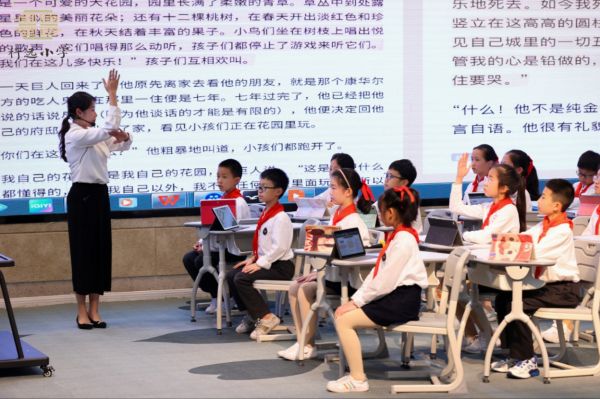 当日下午,行远小学还与江苏徐州市中山外国语试验学校进行联动,两校八个班级的学生突破空间限制,共上一节课——《数字阅读,开启数智新萌芽》。