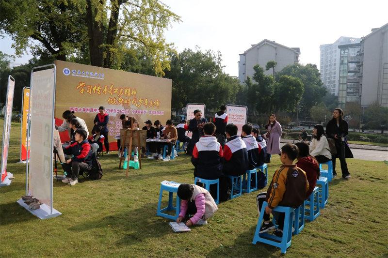 11月26日上午,为纪念“11•27”死难志士,西南大学附属中学30名学生走进西南大学校史馆,聆听校史馆副馆长郑劲松的专题讲解,随后在馆前草坪上拿起画笔,为红岩英烈画像。