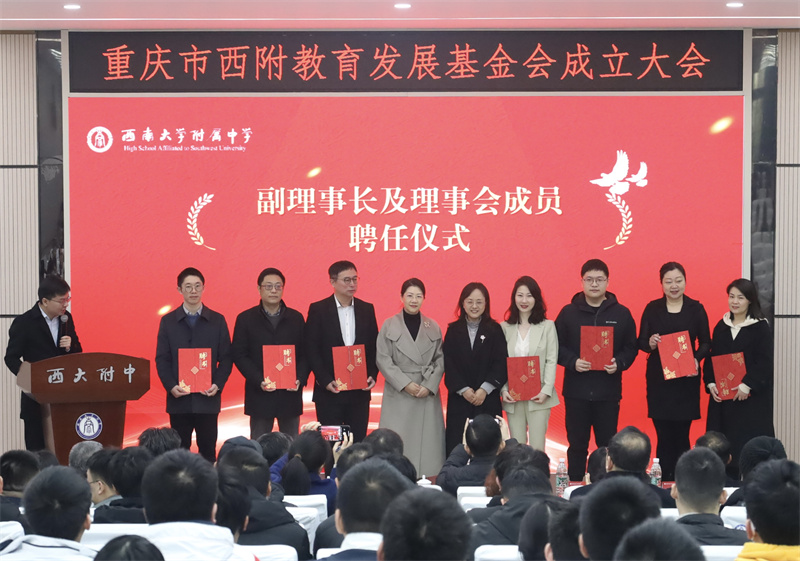 1月13日,重庆市西南大学附属中学教育发展基金会成立大会在北碚区隆重召开,基金会将积极凝聚各方兴学力量,不断加强西南大学附属中学与社会各界的联系与合作,助推学校各项工作高质量发展。