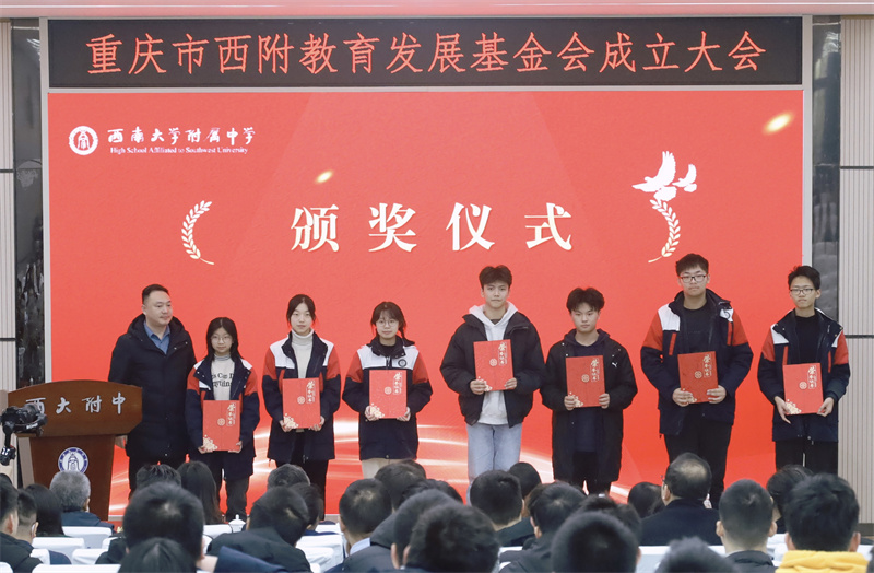 成立大会上还举行了基金会理事长、副理事长、理事会成员聘任仪式,以及企业代表、校友代表捐赠仪式。基金会副理事长陈玮、孙飚作为西南大学附属中学校友,均表示将竭尽所能回馈母校、回馈社会,并希望通过基金会的成立,为更多学子提供更好的成长环境和更多的发展机会。随后,现场的捐赠企业代表、校友代表还为优秀学生代表颁发了奖章和证书。