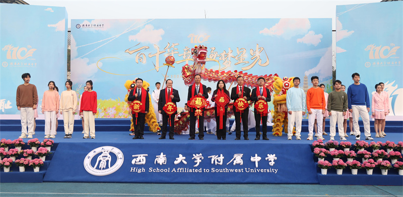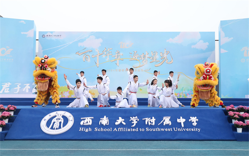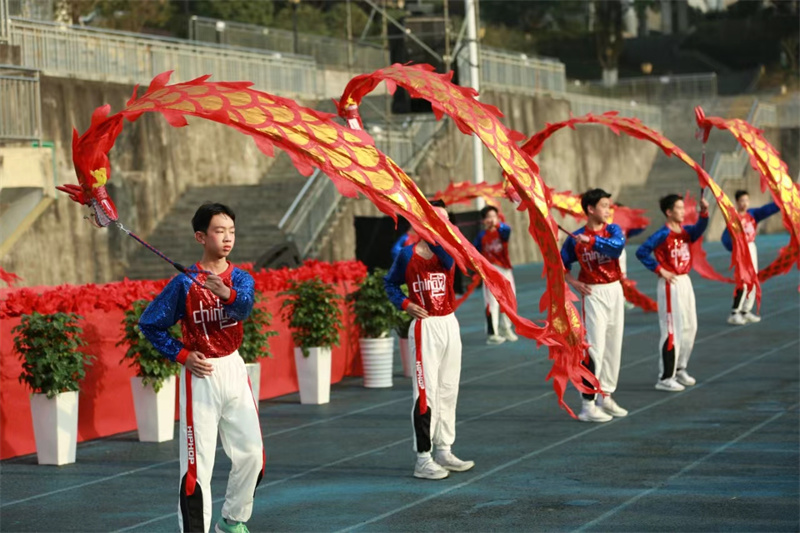 西南大学银翔实验中学田径队带来了彩带龙表演,献礼西南大学附属中学办学110周年。