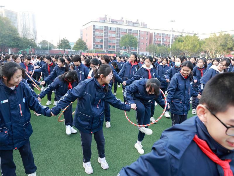据介绍,本次主题团辅活动名为“鲤鱼跃龙门”,设计灵感源自于2024年央视龙年春晚的舞蹈节目《锦鲤》。活动以班级为单位,需要全校各个班级的学生手拉手,逐次从呼啦圈里钻过去,最后以完成时间进行评奖。同学们在团体协作中,体验好似舞蹈动作鱼跃龙门时的美妙时刻,感受拼搏带来的成功喜悦。率先完成的36个班级获得“年年有余” “随心所欲” “绰绰有余”“与众不同”“游刃有余”“无与伦比”等六个特色奖项,其余班级获得了“跃跃欲试”奖。