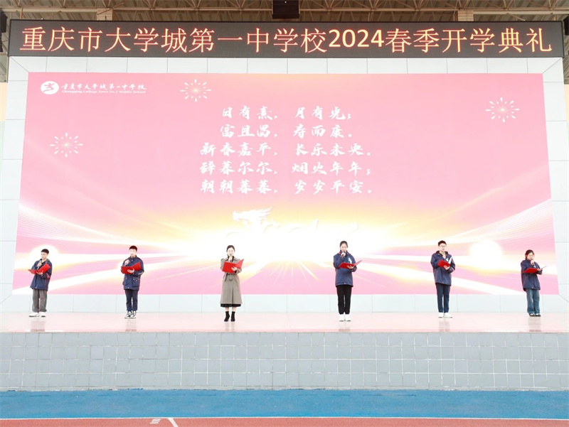 2月19日,重庆市大学城第一中学校四千余名师生齐聚操场,参加2024春季学期开学典礼,共同庆祝新学期的到来。本次开学典礼以“星光熠熠·乐且有仪”为主题,现场开展了“鲤鱼跃龙门”主题团辅活动。