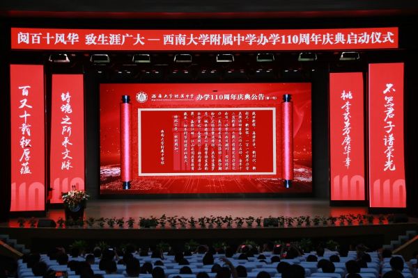 在庆典仪式上,110名校友和1100名师生共同见证了西南大学附中办学110周年庆典的启动。这一历史性时刻,不仅标志着学校百十年的辉煌历程,更预示着学校未来发展的无限可能。通过这次庆典,西南大学附中将进一步加强与校友的联系,凝聚各方力量,共同推动学校的发展,为培养更多优秀的时代新人而努力。