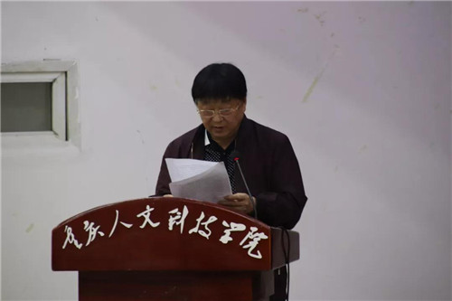 学生工作与就业处朱宇总结2017年度关于就业创业工作。副校长程荣尧宣读了重庆人文科技学院《关于表彰2017年度就业创业工作先进单位和先进个人的决定》,并为先进单位和个人颁奖。
