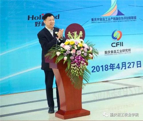 4月27日,由重庆轻工职业学院发起,重庆良瑜投资集团、重庆好利来、重庆市食品工业研究所、中国素满香餐饮集团共建的"重庆市食品工业产教融合协同创新联盟"在重庆轻工职业学院举行友好协作会。