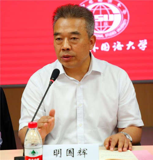 明国辉发表讲话。他向三位资深教授表达了深深的敬意,并号召全体教职工学习他们对教育事业的热爱、执着与敬业的精神,把责任感、使命感和归属感融入到行为习惯和思维方式中,做到认同川外、热爱川外,将川外的兴衰与个人发展联系起来。他指出,师资队伍是一所高校的核心竞争力之一,学校要重视教师的个人发展,制定更长远的计划。他希望老师们增强使命感,回馈学校,回报国家。