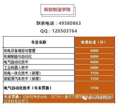 收费标准:住宿费标准为800~1200元/年,各项收费标准以重庆市物价局批准的为准(“专本贯通”本科阶段按本科院校收费标准执行);