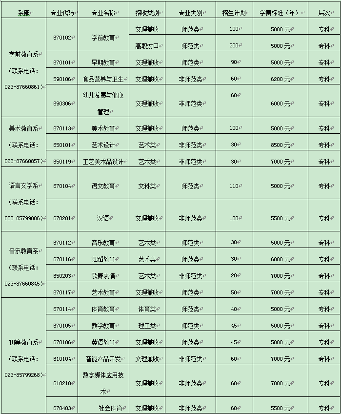 重庆幼儿师范高等专科学校2019年分类考试招生简章