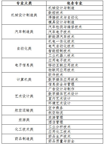 (二)高职专科招生专业:我校今年招生专业共计51个,部分专业继续实行大类招生,共计10个专业大类,包含29个专业,具体专业大类如下: