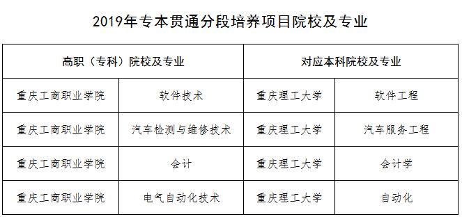 (2)我校2019年“专本贯通分段培养项目”招生专业及分专业招生计划以经重庆市教育委员会审核、重庆市教育考试院对外发布的信息为准。