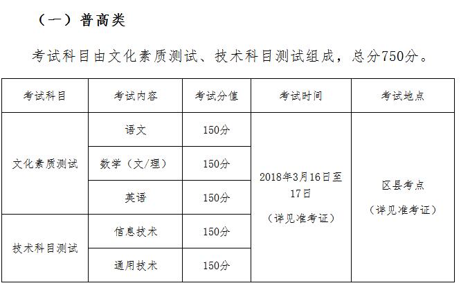 (1)普高类招收文理类专业,分文、理,按文化素质和技术科目总成绩(含政策性加分,下同)进行排序。总成绩相同时,依次比较语文、数学、英语、信息及通用技术。