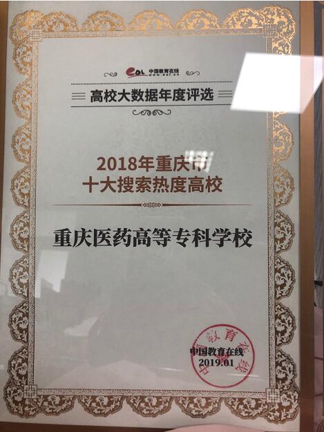 重庆医药高等专科学校喜获“2018年重庆十大搜索热度高校”奖项