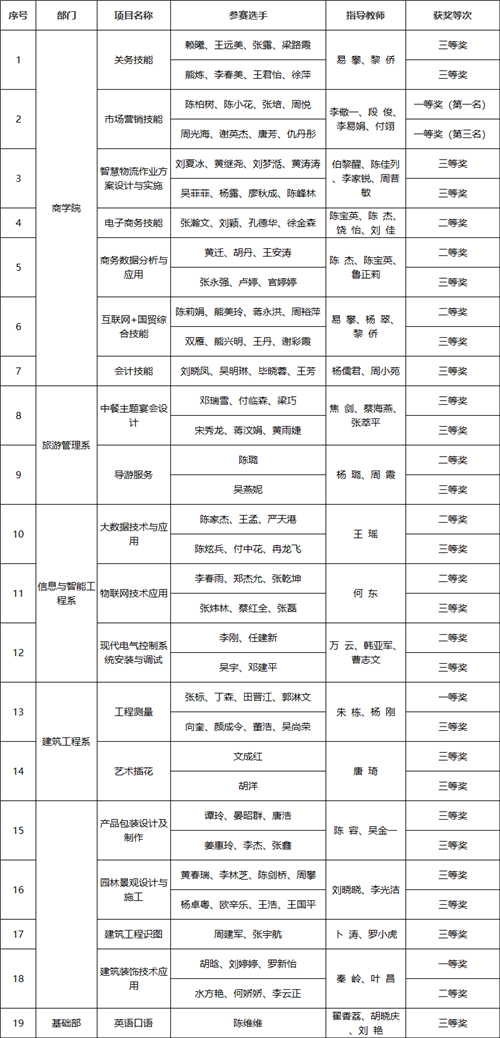 重庆城市职业学院在2019年“巴渝工匠杯”重庆市第十二届高等职业院校学生职业技能竞赛中荣获34个奖项