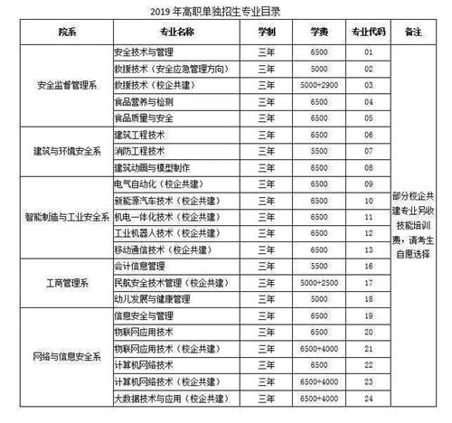 学院立足区域经济社会安全发展需要,紧紧围绕习近平总书记为重庆发展提出的“两点”定位、“两地”“两高”目标和“四个扎实”的要求,与重庆支柱产业和战略性新兴产业集群的高度契合加强专业建设,开设有安全技术与管理、救援技术(安全应急管理方向)、食品质量与安全、建筑工程技术(工程质量与安全方向)、消防工程技术、新能源汽车技术、工业机器人技术、机电一体化技术、信息安全与管理、大数据技术与应用、民航安全技术管理等22个专业。院内建有公共安全体验科普基地、人机工程实训室、食品理化分析实训室、网络攻防实训室、建筑工程仿真实训室、证券理财实训室、数控车床实训室、汽车综合实训室等66个实训场所。建有校外实习实训、就业基地128个。