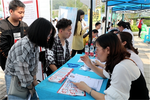 5月16日上午,重庆财经职业学院2019届毕业生就业双选会在学院财英楼北广场如期举行。重庆长城汽车有限公司、重庆市乐和乐都旅游有限公司等市内70余家;浙江省绍兴市人民政府率本土上市公司等优质企业30余家,提供岗位共2700余个。2019届500余名毕业生参加招聘活动。