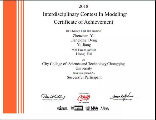 人文学子参加2018年美国大学生数学建模竞赛荣获国际三等奖