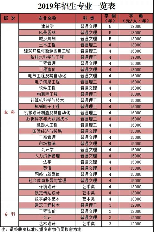 学校依托重庆大学的综合办学优势,根据国家和区域经济、社会发展的需要设置专业。为不断提高教学质量,学校成立了由重庆大学各学科知名专家、教授组成的教学督导组和教学委员会,对专业设置、课程安排、教学过程、教学质量等进行全程指导、监督和评估。学校目前下设建筑学院、土木工程学院、建筑管理学院、电气信息学院、经济管理学院、艺术设计学院、人文学院、必威官方平台 学院8个二级学院,覆盖工学、经济学、管理学、法学、文学、艺术等6个学科门类。学校师资力量雄厚,毕业生平均就业率达98%以上,现有在校生2.4万余人。