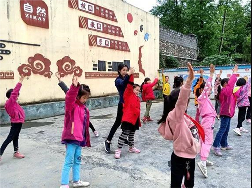 在酉阳县车田乡中心小学支教的高艺轩给学生上舞蹈课