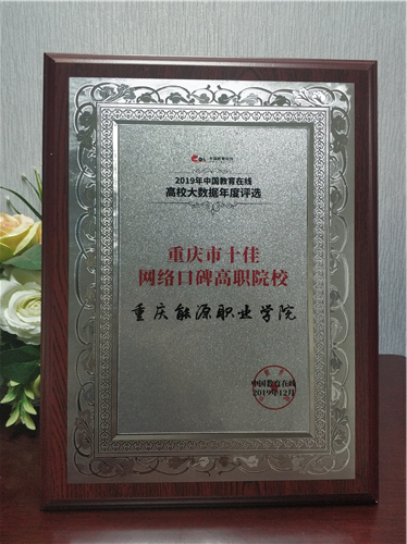 重庆能源职业学院获评“2019年重庆市十佳网络口碑高职院校”