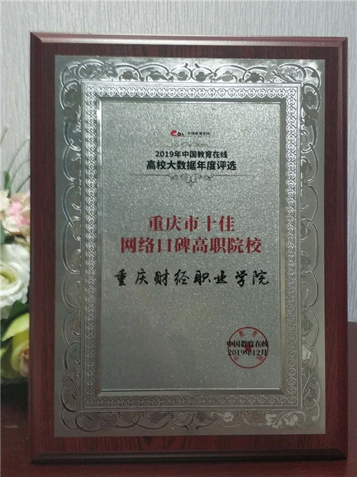 重庆财经职业学院获评“2019年重庆市十佳网络口碑高职院校”