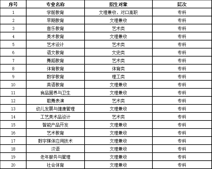 2020年招生专业一览表