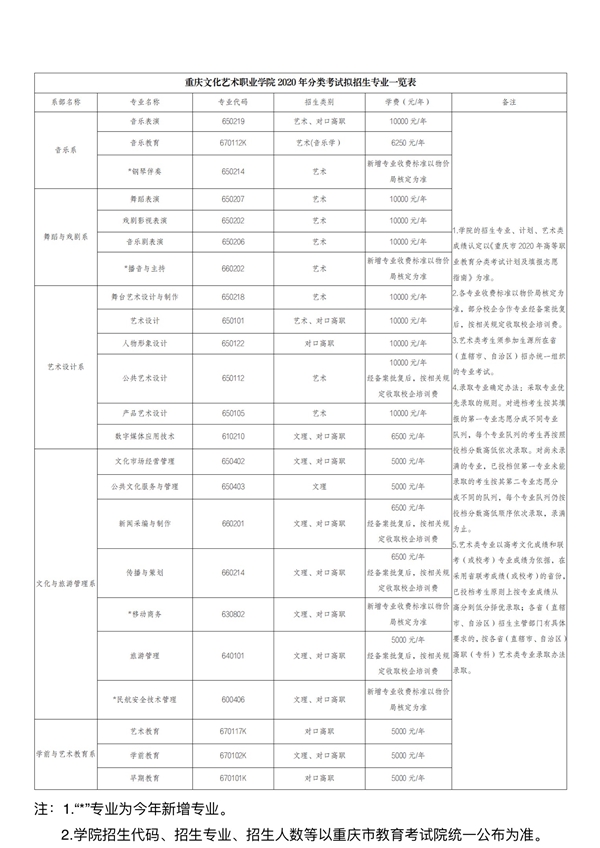 重庆文化艺术职业学院是经重庆市人民政府批准成立、教育部备案的公办综合性高等艺术职业学院。以重庆艺术学校为办学基础,曾培育出三届梅花奖得主中国剧协副主席沈铁梅,蒋勤勤、殷桃、吕一、汪子涵、朱晓渔、周莉、刘靓靓、王弋等一大批知名艺术家和影视明星,也有德艺双馨并获得国务院特殊津贴的青年艺术家陈涛,被誉为“艺术家的摇篮”。学生在金马奖、金K奖、IBM国际魔术大赛、国际标准舞世界锦标赛、桃李杯、荷花杯、梨花杯、孔雀奖、全国职业院校技能大赛等国际国内知名艺术赛事上斩获殊荣。时任文化部部长孙家正亲笔题写校训“厚德博艺、真诚求索”,对学校发展寄予厚望。