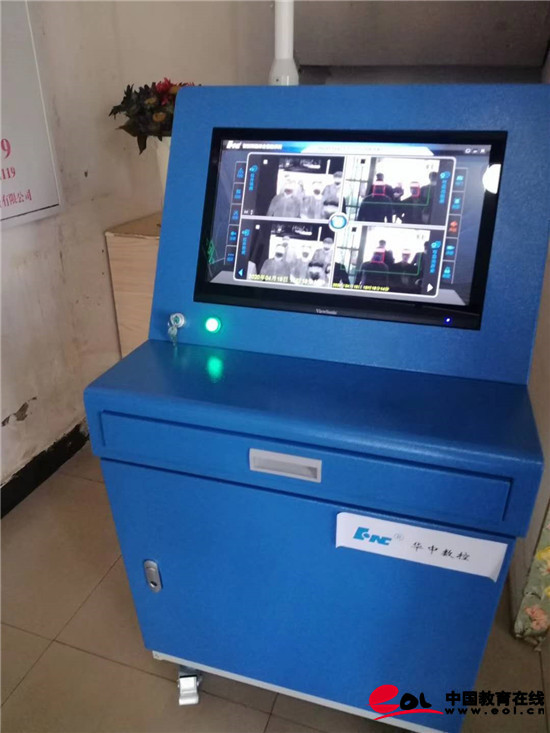 食堂内原为4人一桌的桌面上都竖立着一块隔板,据杨赟校长介绍到,这是为了保障学生用餐安全,要求学生错峰来到食堂就餐,按照排好的座位斜对面定位就坐,无交流就餐。记者了解到,学校食堂还更换了可高温消毒的餐具,每餐对餐具集中消毒,同时,将校内洗手水龙头全部更换为感应无触碰式,避免直接接触。与此同时,为了保证住读生的安全,寝室大楼也设置了红外线检测器,会实时检测每位进出师生的温度状况。
