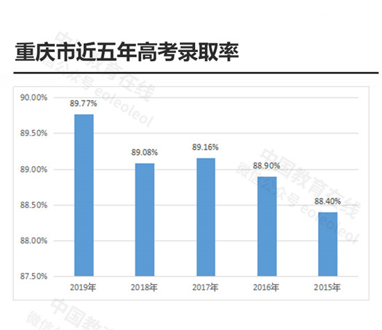 近年来,录取率保持较高水平已是常态。根据统计,重庆市近五年来高考录取率基本维持在89%左右。